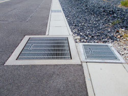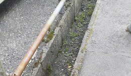 側溝には、全てコンクリートの蓋がしてあります。 雪捨ての為一枚だけ講師の鉄枠が