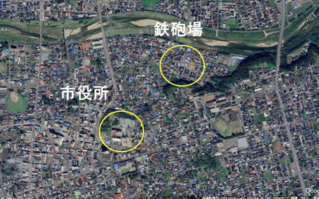 鉄砲場 目撃6件と 中城(=市役所)目撃1件。 市役所東方には東台があり目撃は5件。