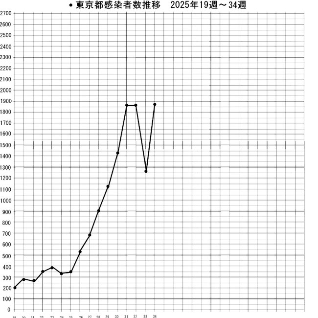 東京都定点観測 医療機関平均感染者数(1週間ごとの平均値)