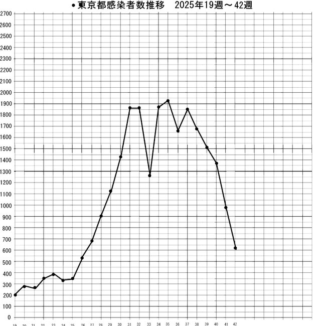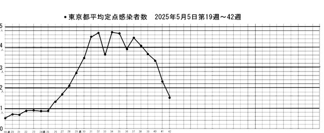東京都定点観測 医療機関平均感染者数(1週間ごとの平均値)
